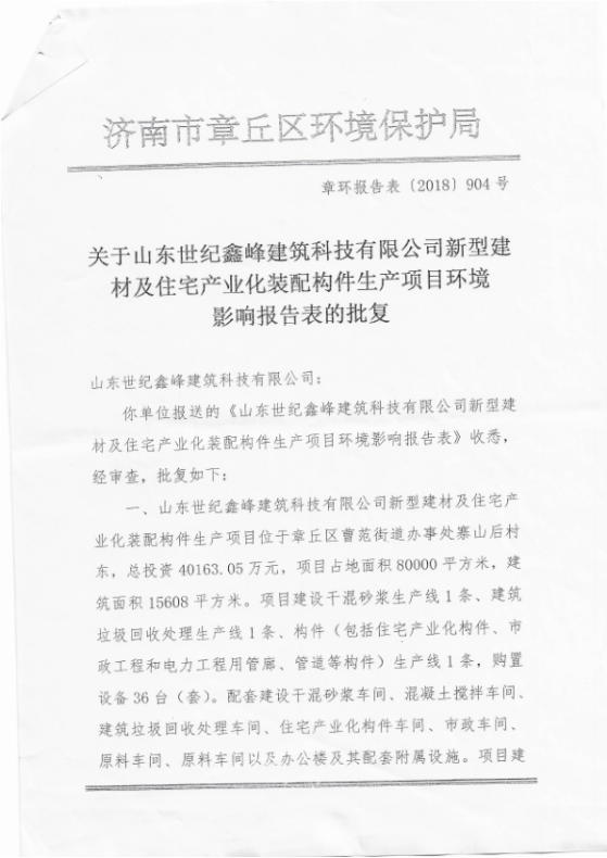 根據(jù)《中華人民共和國環(huán)境影響評價法》及相關(guān)環(huán)境保護管理的規(guī)定,現(xiàn)委托貴公司承擔“ 山東世紀鑫峰建筑科技有限公司新型建材及住宅產(chǎn)業(yè)化裝配構(gòu)件生產(chǎn)項目 ”的竣工環(huán)境保護驗收監(jiān)測的工作。